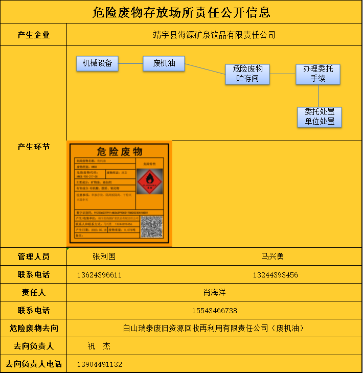 危险废物存放场所责任公开信息
